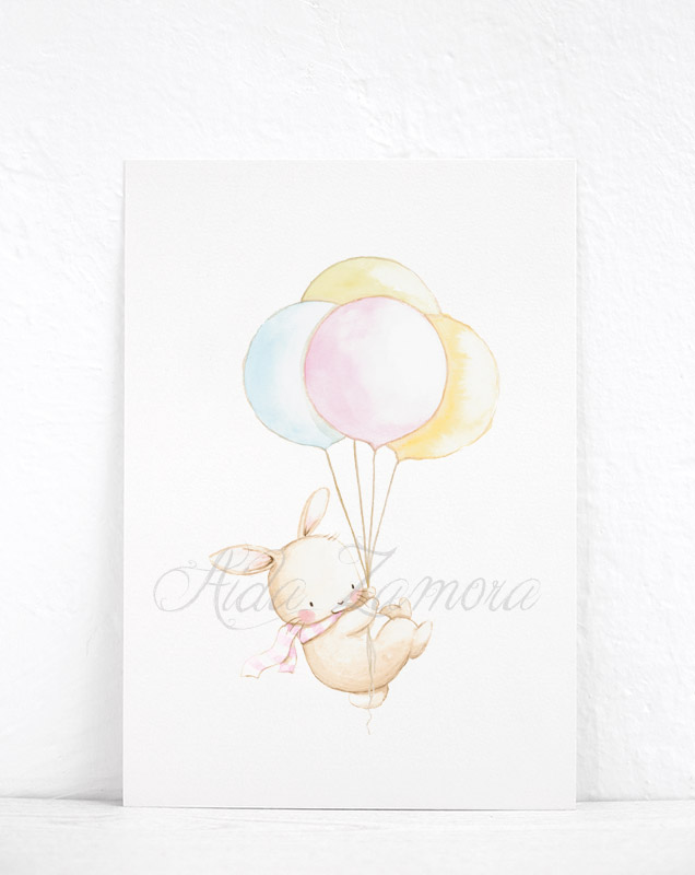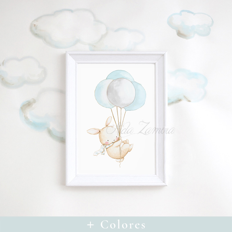Esta lámina infantil Conejito con Globos es ideal para decorar la habitación de los mas pequeños de la casa. Envuélvelos en una atmósfera de fantasía y dulzura de la mano de estos adorables animalitos.